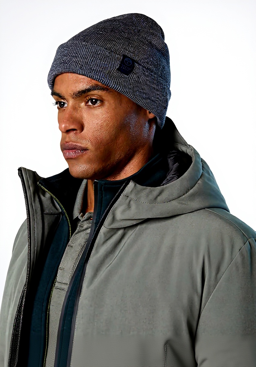Il berretto è disponibile in nero, medium grey melange, city grey, china blue melange e navy blue, offrendo opzioni per abbinamenti versatili.